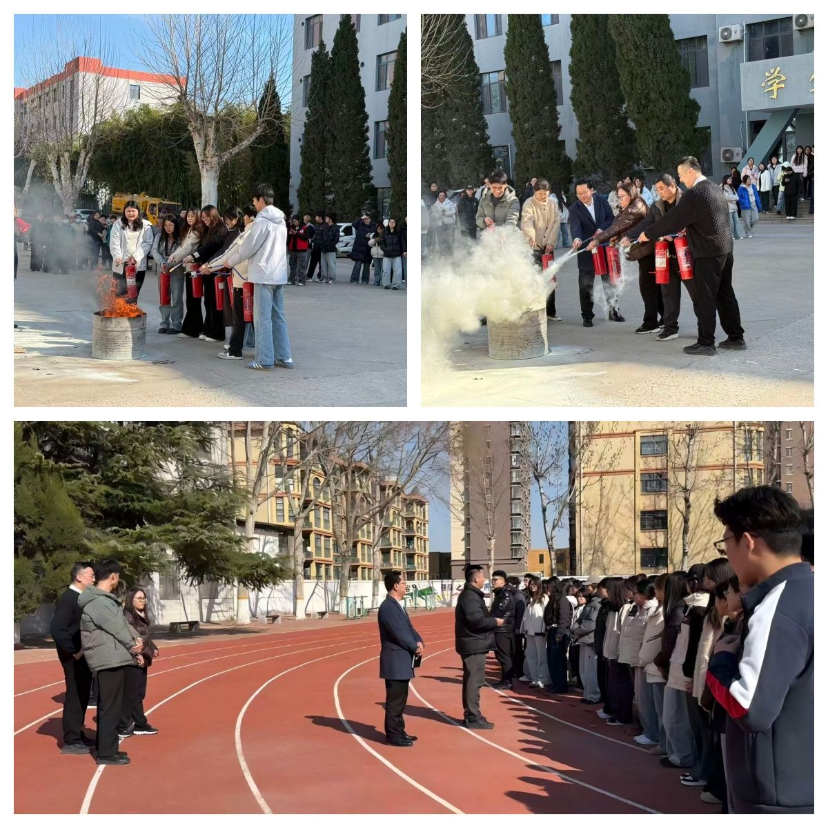 组织一场应急实操演练,练就自救“硬本领”。联合学校保卫科开展消防应急演练,保卫科宁建峰专员现场演示灭火器标准操作,讲解火场疏散、初期火情处置流程,组织师生实操体验,切实提升突发情况下自救互救能力。