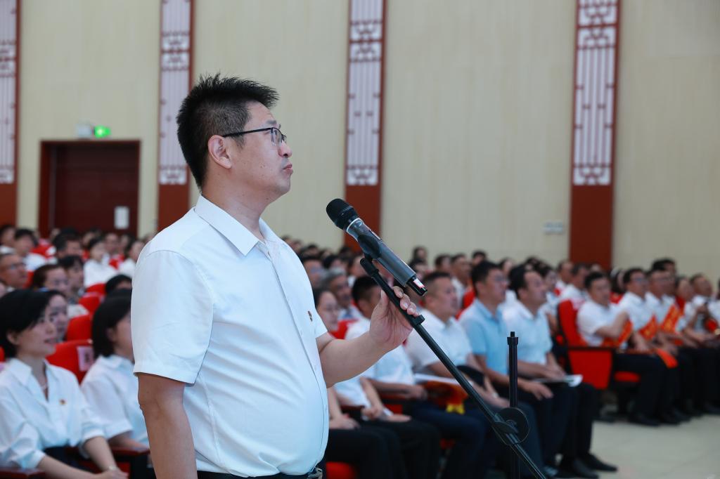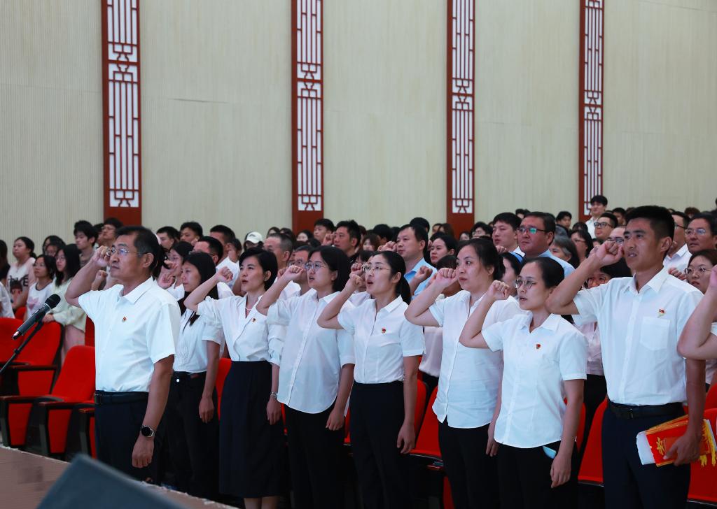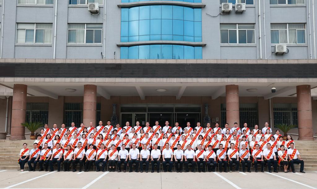 最后,在大会热烈的气氛中,陈卫国带领全体教职工重温了人民教师誓词。