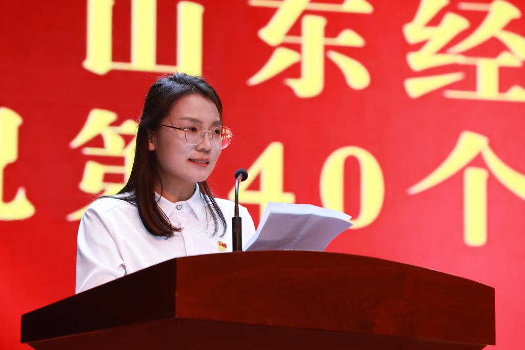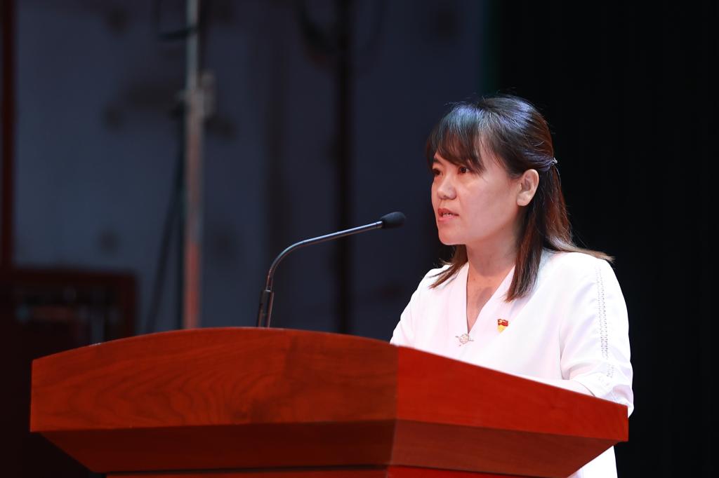 受表彰代表——第三届全省学校思想政治理论课教学比赛特等奖获得者郭琦老师、教师新秀代表胡玉杰老师作了交流发言;信息技术系主任王海霞分享了暑期复旦大学干部培训班学习体会。