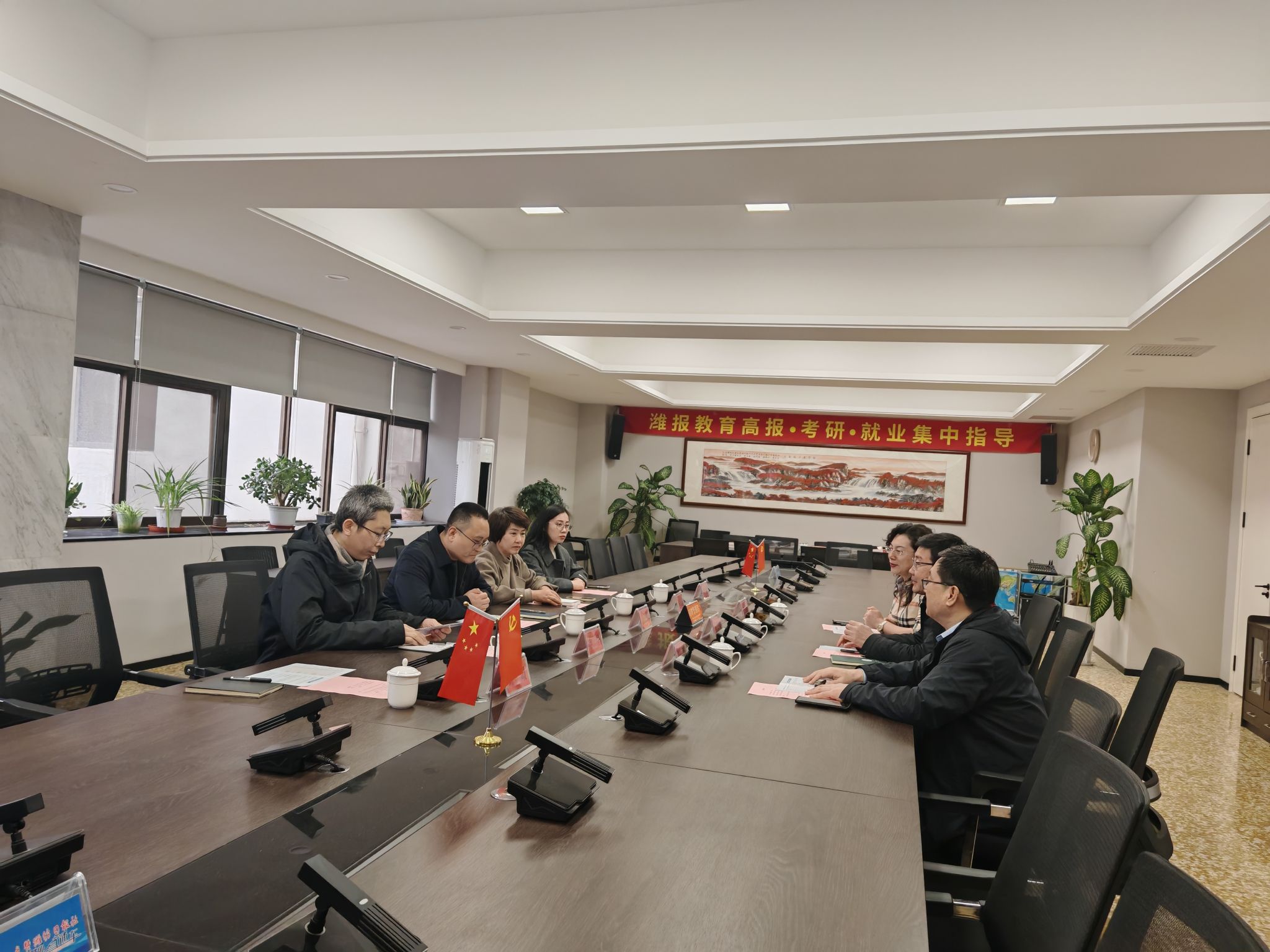潍坊融媒体中心副主任王志刚等领导热情接待中国竞彩网:一行,带领中国竞彩网:团队参观了潍坊报史馆,详细介绍了报社发展历程、融媒体业务布局、人才需求方向等。双方围绕校学生实习就业、实训基地共建、社会培训项目合作等内容深入交流,就媒体与教育行业跨界合作、人才联合培养达成初步共识。