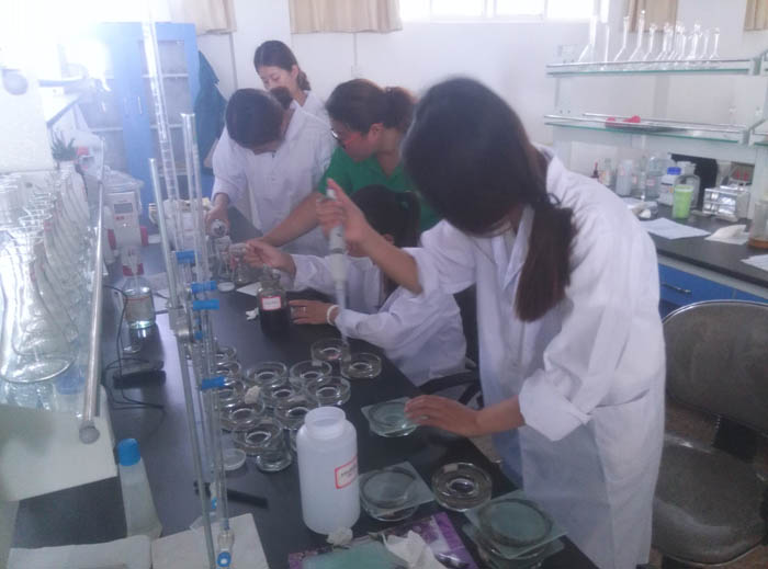 取土岗位的同学们,每天顶着烈日到农田里进行取土作业,一天最多要取到30多个土样,中午不能回来休息,就把车停在乡间小路里小憩一会。测土岗位的同学们,在指导教师的指导下,晒土、磨土、筛土、土壤检测等环节,试验步骤做的一丝不苟。智能配肥岗位的同学们,整理农户档案、制作土壤二维码、制作农户IC卡,进行机器配肥,工作进行的有条不紊。农民讲堂和农技宣传岗位的同学,到田地、入农户分发农技宣传材料、宣传施肥打药的新技术。