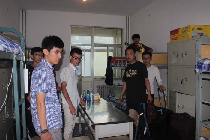 9月6日晚,李逾男、高巍分别带领辅导员走访了新生宿舍,和同学们聊家常、谈人生,了解他们的生活情况,一个甜蜜的笑容,一句温暖的话语,给初来乍到的新生们带来了一缕缕的温暖、一丝丝的感动,让身在异乡的新生感受到了家的温暖。
