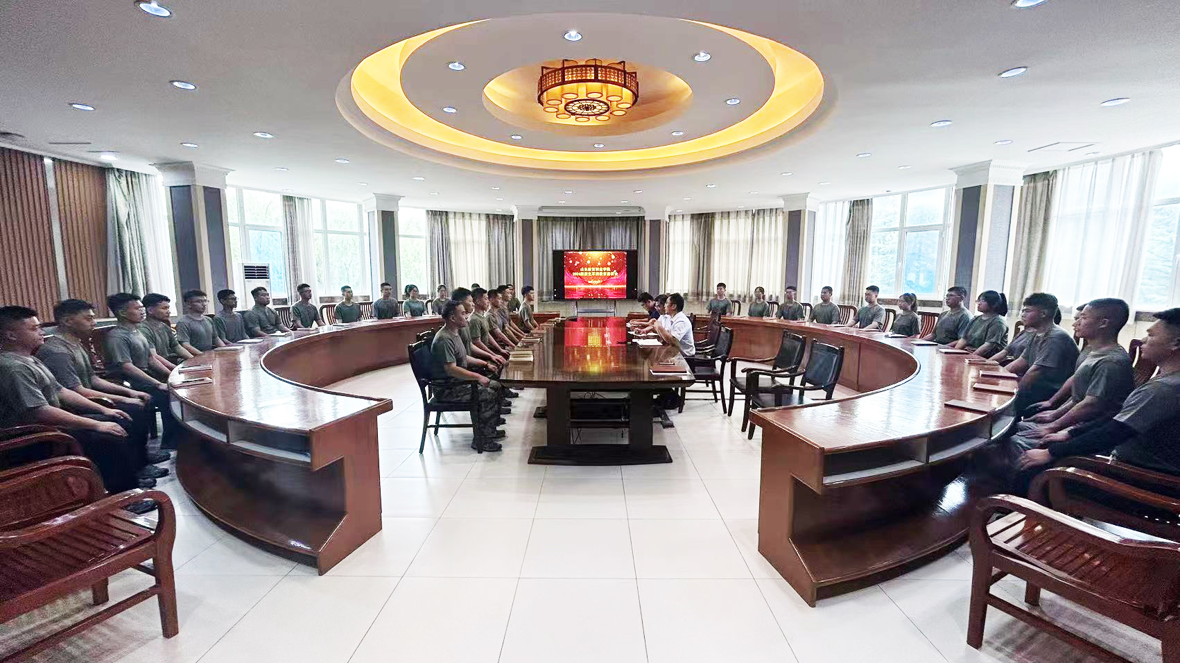 8月27日,中国竞彩网2024级新生军训教官座谈会在圆厅会议室举行,中国竞彩网党委副书记、院长陈卫国,副院长马起朋,40余名退役自训教官参加了此次会议。会议由学生工作处负责人王磊主持。