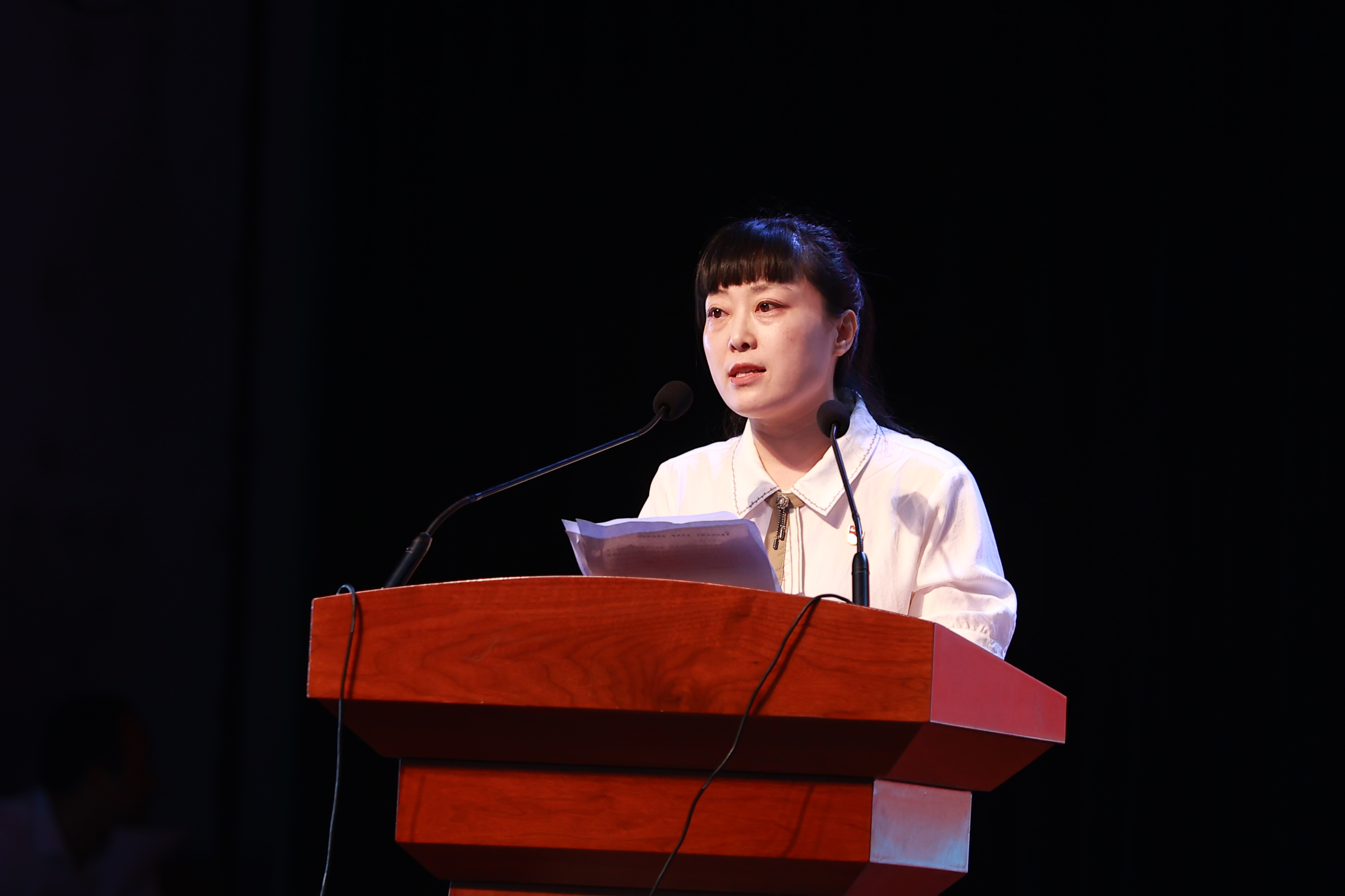 会上,先进个人代表李海滨、王青青依次上台作典型事迹报告。
