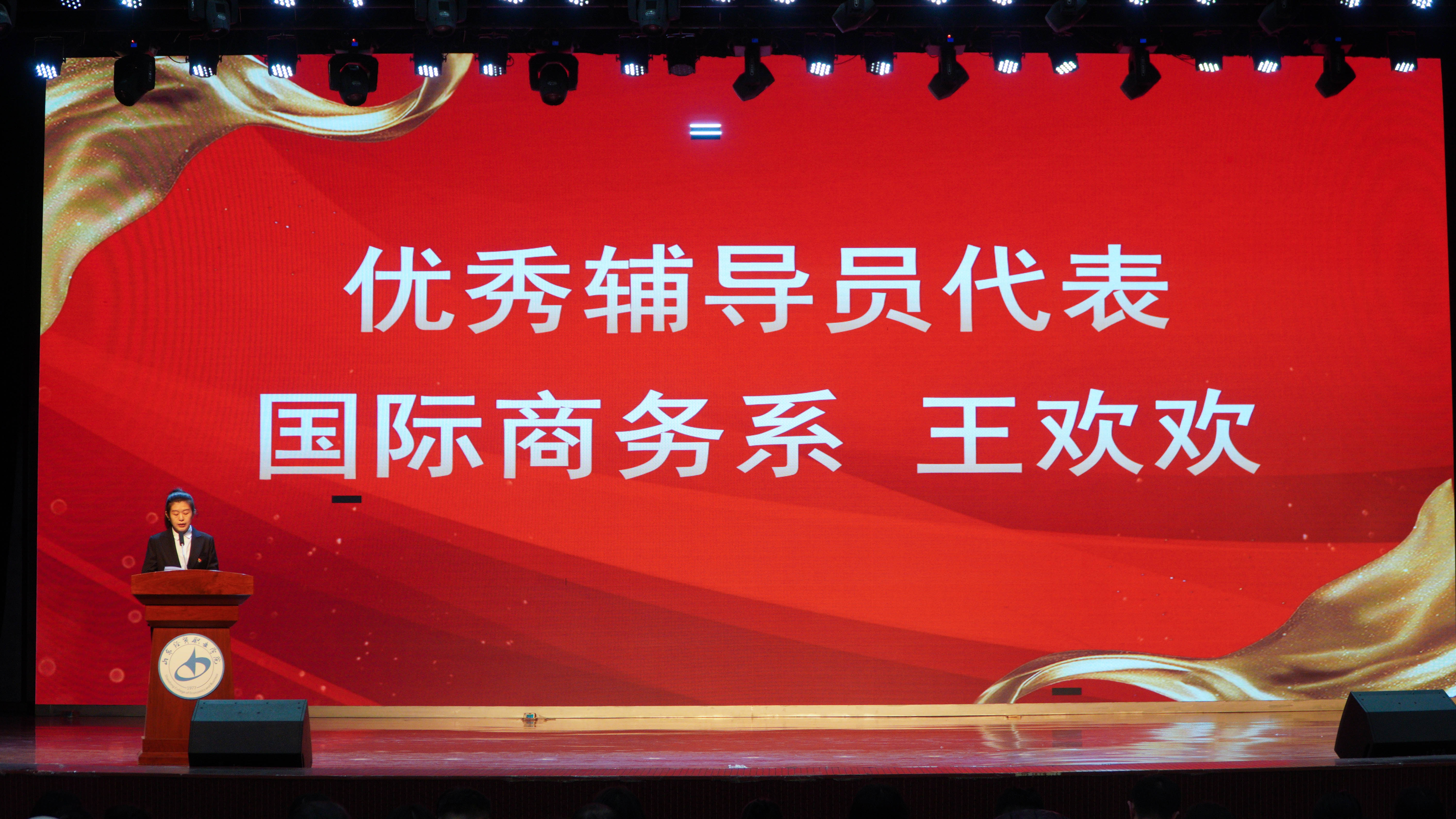 中国竞彩网优秀辅导员代表国际商务系团总支书记王欢欢,第九届“互联网+”大赛金奖指导教师、大赛优秀指导教师代表、科学与人文系教师吴志明依次上台发言。
