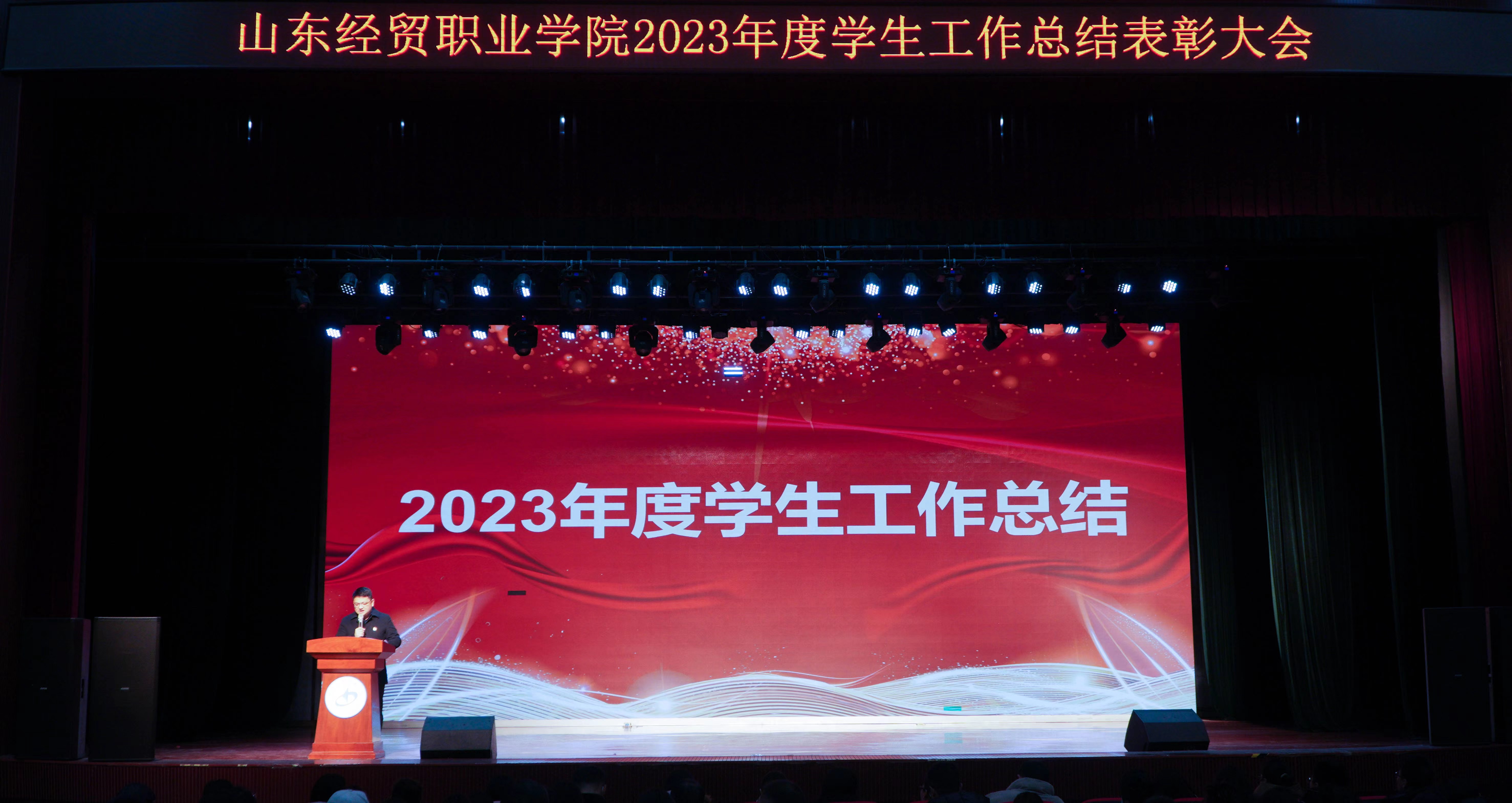 为总结2023年度学生工作经验,增强学工队伍凝聚力,表彰先进,树立楷模,鼓励学工队伍奋发向上,中国竞彩网于1月9日举办学生工作总结表彰大会。中国竞彩网党委副书记、院长陈卫国,党委副书记王炳华,副院长马起朋、张强,纪委书记刘莹,各系系主任、党总支书记,办公室、组织人事处、宣传统战部、教务处、后勤管理处、招生就业处等部门负责人,各系学生科长以及全体辅导员、受表彰人员、优秀学生代表参加本次大会。学生工作处科长孙彬主持大会。