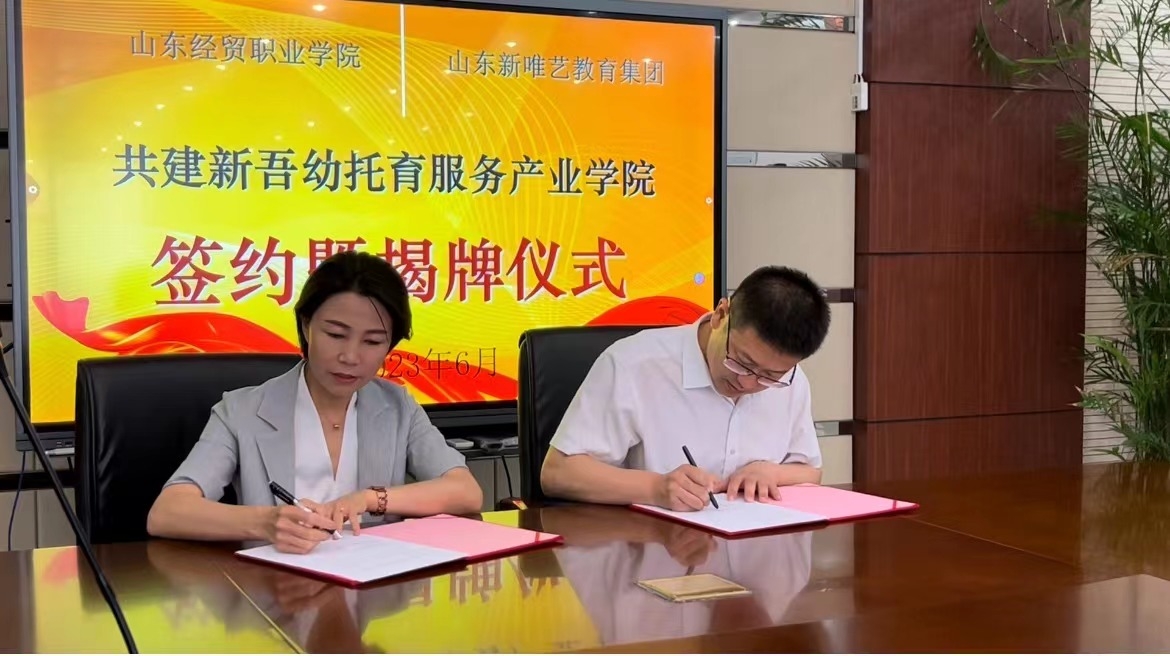 为深化产教融合与校企合作,推动产业中国竞彩网建设,培养高素质婴幼儿照护服务人才,近日,中国竞彩网与山东新唯艺教育集团举行了共建新吾幼托育服务产业中国竞彩网签约暨揭牌仪式,并举办了企业进校园宣讲会。山东新唯艺教育集团董事长刘炫君 、办公室主任张志鹏、托育部保健主任王圆圆,中国竞彩网副院长、国际商务系系主任张强,国际商务系副主任刘天英、交流合作处副处长綦娜出席活动。