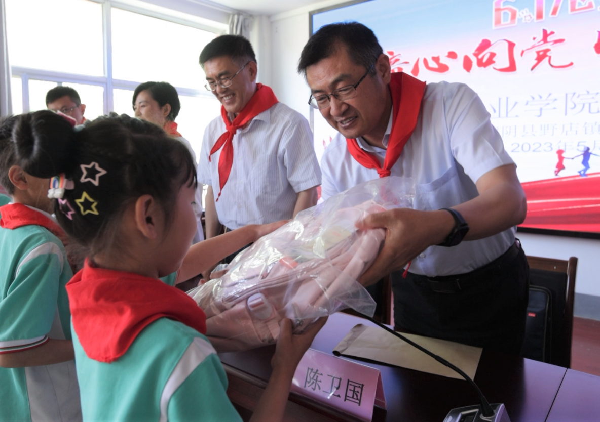 在“学思想 强党性 庆六一 献爱心”活动现场,陈卫国等为孩子们送上了书包、文具等价值10000元的学习用品,并向孩子们致以节日的祝福。他希望孩子们坚定理想信念、听党话跟党走,心向阳光生活、平安健康成长,刻苦学习知识、提高能力本领,努力成为未来建设家乡和祖国的人才。