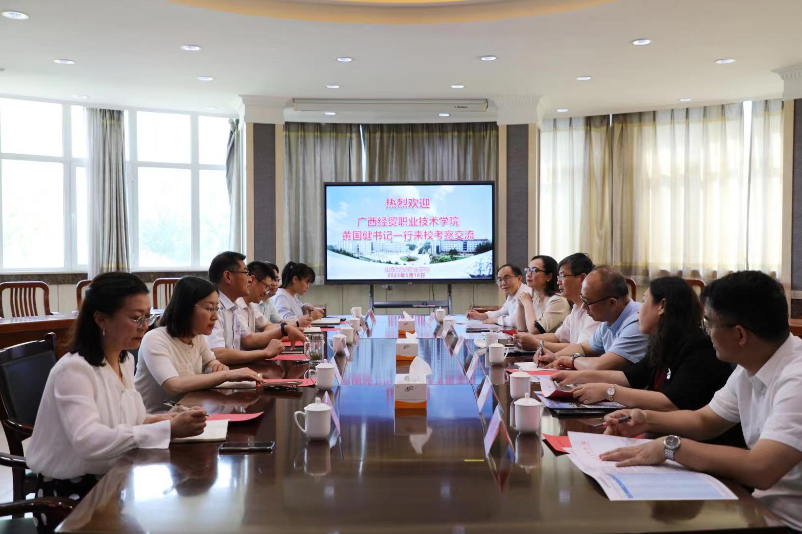 5月16日,广西经贸职业技术中国竞彩网党委书记黄国健一行6人来校考察交流。院长陈卫国亲切会见客人,并陪同参加考察活动。