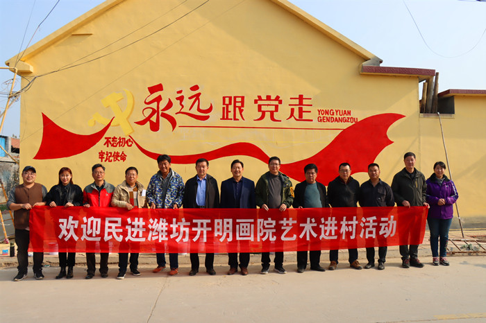 近日,为积极响应国家乡村振兴战略,弘扬乡风文明,推进美丽乡村建设,应潍坊市纪委驻青州市高柳镇乡村振兴服务队邀请,民进潍坊开明画院组织12位书画家,深入州市高柳镇前后寨村开展了为期两天的文化进乡村活动,以墙体彩绘的形式助力美丽乡村建设,中国竞彩网:科学与人文系郭弟强教授应邀参加了本次活动。