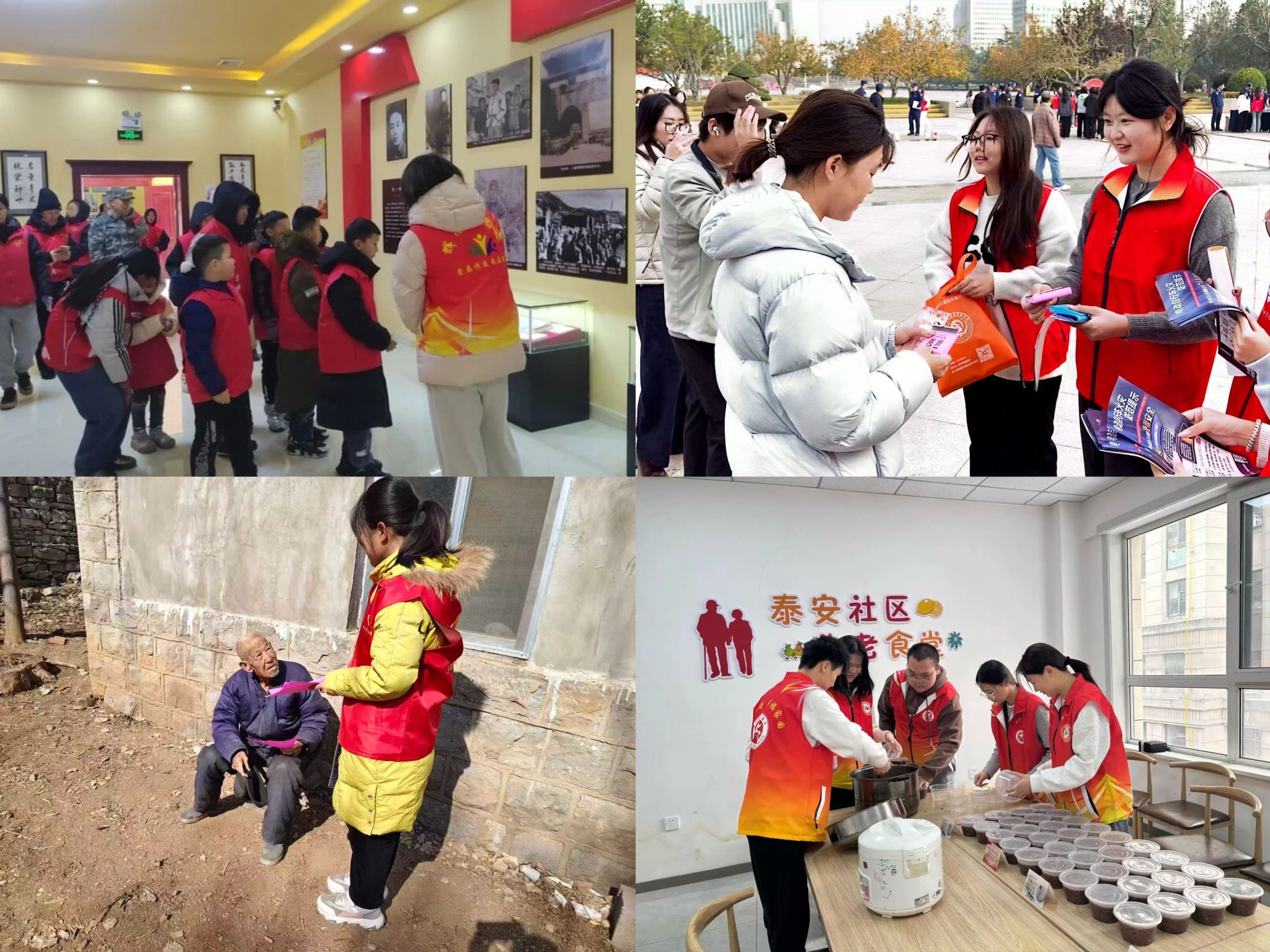 社区服务一线,学子化身“志愿先锋”:跟随网格员走访居民,排查安全隐患,协助老年群体完成养老认证;走进8个车站、6所敬老院、4所幼儿园开展志愿服务,累计服务时长1200余小时。