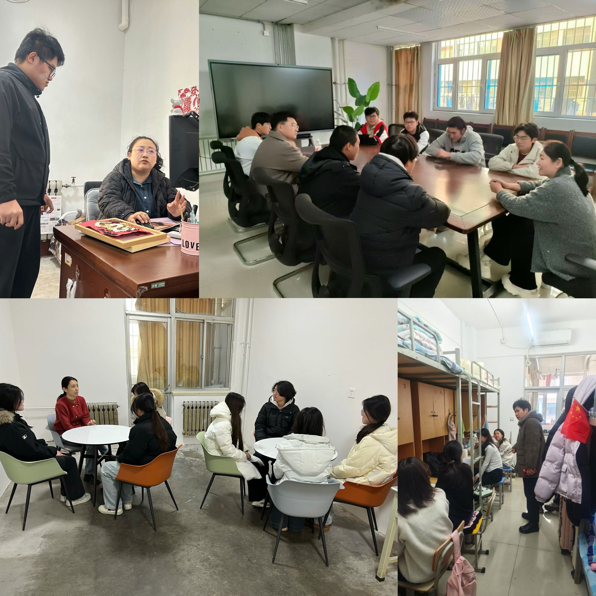 依托“一站式”学生社区建设,会计系将雷锋精神与学生日常管理服务深度融合,组织全体辅导员开展宿舍安全卫生检查与暖心谈心谈话活动。辅导员走进学生宿舍,细致排查用电安全、消防隐患等问题,对宿舍卫生死角、物品摆放不规范等情况现场指导整改,引导学生养成整洁有序的生活习惯,筑牢宿舍安全防线;同时与学生面对面亲切交流,倾听他们在新学期学业规划、生活适应、心理状态等方面的困惑与需求,耐心答疑解惑、悉心疏导情绪,鼓励同学们在宿舍生活中传承雷锋互帮互助、团结友爱的精神,相互包容、携手共进,共同打造文明和谐、温暖向上的宿舍氛围,让一站式学生社区成为传递温情、践行雷锋精神的前沿阵地。