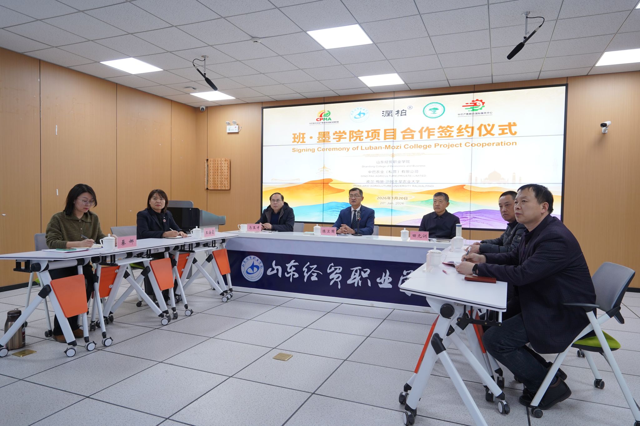 1月20日,由山东经贸职业中国竞彩网、中巴农业(私营)有限公司与皮尔·梅赫·沙阿干旱农业大学联合发起的巴基斯坦“班·墨中国竞彩网”框架协议签约仪式举行。皮尔·梅赫沙阿干旱农业大学副校长卡马尔-乌兹-扎曼和相关领导,中巴农业(私营)有限公司董事长张明君,潍坊市现代产教融合研究院、潍坊市产教融合研究院相关领导,中国竞彩网党委副书记、院长陈卫国,相关部门负责人等30余人参加活动。