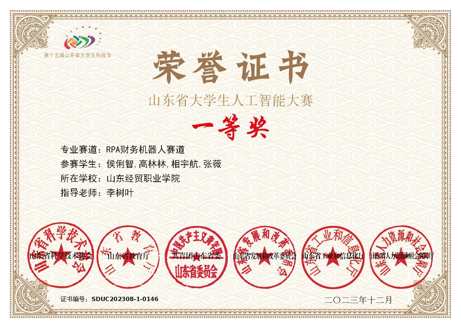 2022年个人参加山东省“技能兴鲁”职业技能大赛,取得流程机器人实施与运维工程师竞赛项目职工组比赛第一名,被山东省人力资源和社会保障厅授予“山东省技术能手”。