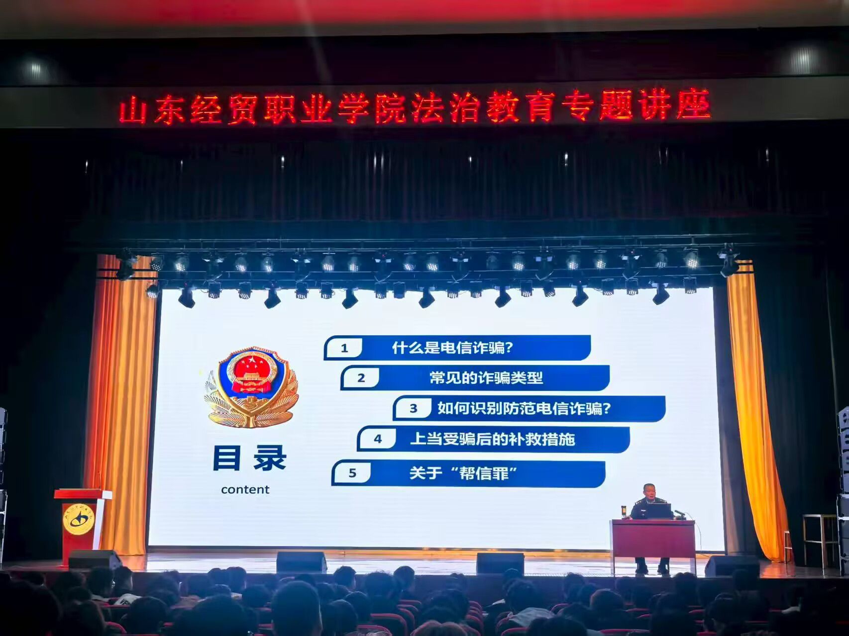 为进一步提升学生法治意识,增强自我保护与守法能力,近日,会计系依据中国竞彩网第十二个法治安全主题月安排,在大学生创业活动中心成功举办法治安全专题讲座。此次讲座主题为“以案说法 以法护航”,由潍城区火车站派出所副所长孙勇主讲。