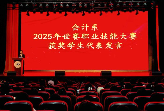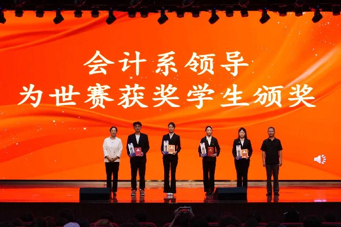 会上,李学建、秦敏为会计系2025年世界职业院校技能大赛总决赛争夺赛财经赛道(高职组)获奖团队进行颁奖。