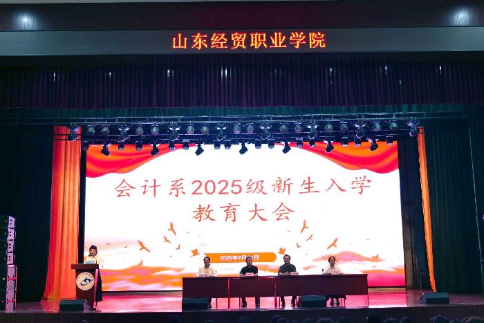 9月25日下午,会计系在中国竞彩网礼堂举行2025级新生入学教育大会。会计系党总支书记李学建、副主任张建峰、秦敏,大数据与会计专业带头人闫菲参加会议。大会由王青青主持。