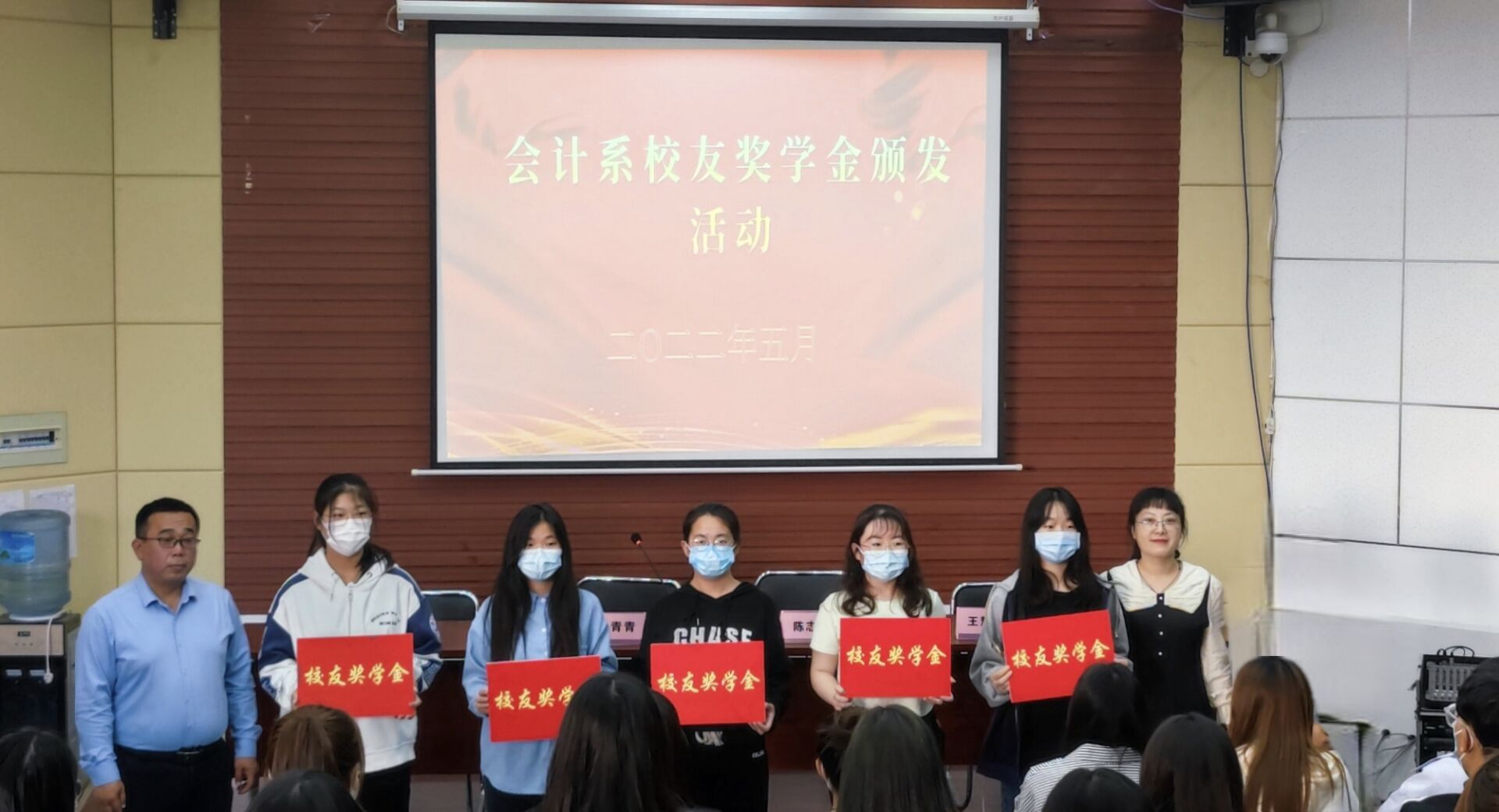 近日,会计系第二届校友励志奖学金颁奖活动在1号教学楼会计大讲堂举行。会计系校友励志奖学金是我系2009届毕业生韩国栋出资设立的,它旨在鼓励家庭经济困难的优秀学生,珍惜青春光阴,不负韶华,奋力拼搏。会计系党总书记陈志勇、团总支书记、学生科科长王青青、会计系校友工作指导教师王慧清参加活动。