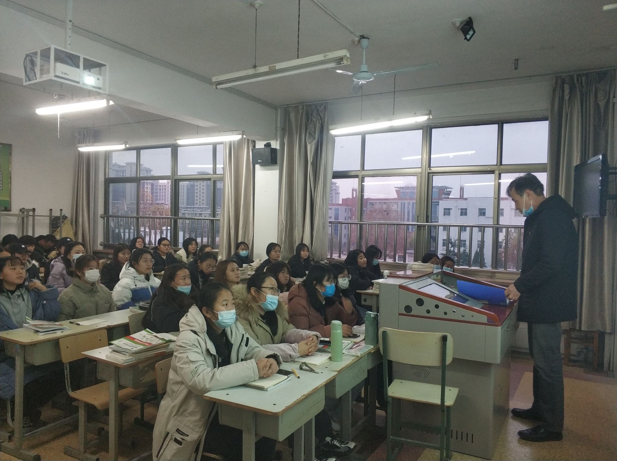 王爱国同志从十九大以来我们国家取得的显著成绩、十九届五中全会吹响了开启现代化建设新征程的号角、社会主义现代化国家新征程面临的风险和机遇以及我国社会主义现代化国家新征程前景光明四个方面全面介绍了十九届五中全会精神。党课通过纵向横向比较和发展数字的前后对比变化,让在座师生既深切感受到了党的十九大以来我们国家在各领域取得的骄人成绩,也让大家认识到我们国家面临的问题和困难、增强了责任意识,普遍感受到十九届五中全会提出的实现2035年的远景目标和十二个方面举措,切合当前我国面临的百年未有之大变局,符合国情、顺应民意,进一步提高了走中国特色社会主义道路自信。王爱国同志还向同学们提出了殷切的希望和要求,要求同学们要了解我国历史和发展现状,关心国家大事,坚定理想信念,认真学习文化知识,努力学好本领,争做合格的社会主义现代化建设接班人。