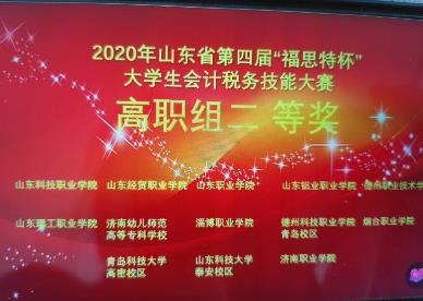 由山东省教育厅高等教育处主办的第四届山东省“福思特杯”大学生会计税务技能大赛于2020年12月26日上午举行,中国竞彩网:会计系派出李梅、贾瑞敏两位老师指导的许诺、姜瑜、胡宏娟、陈奇秀、陈晓五位同学组成的代表队获得团体二等奖。