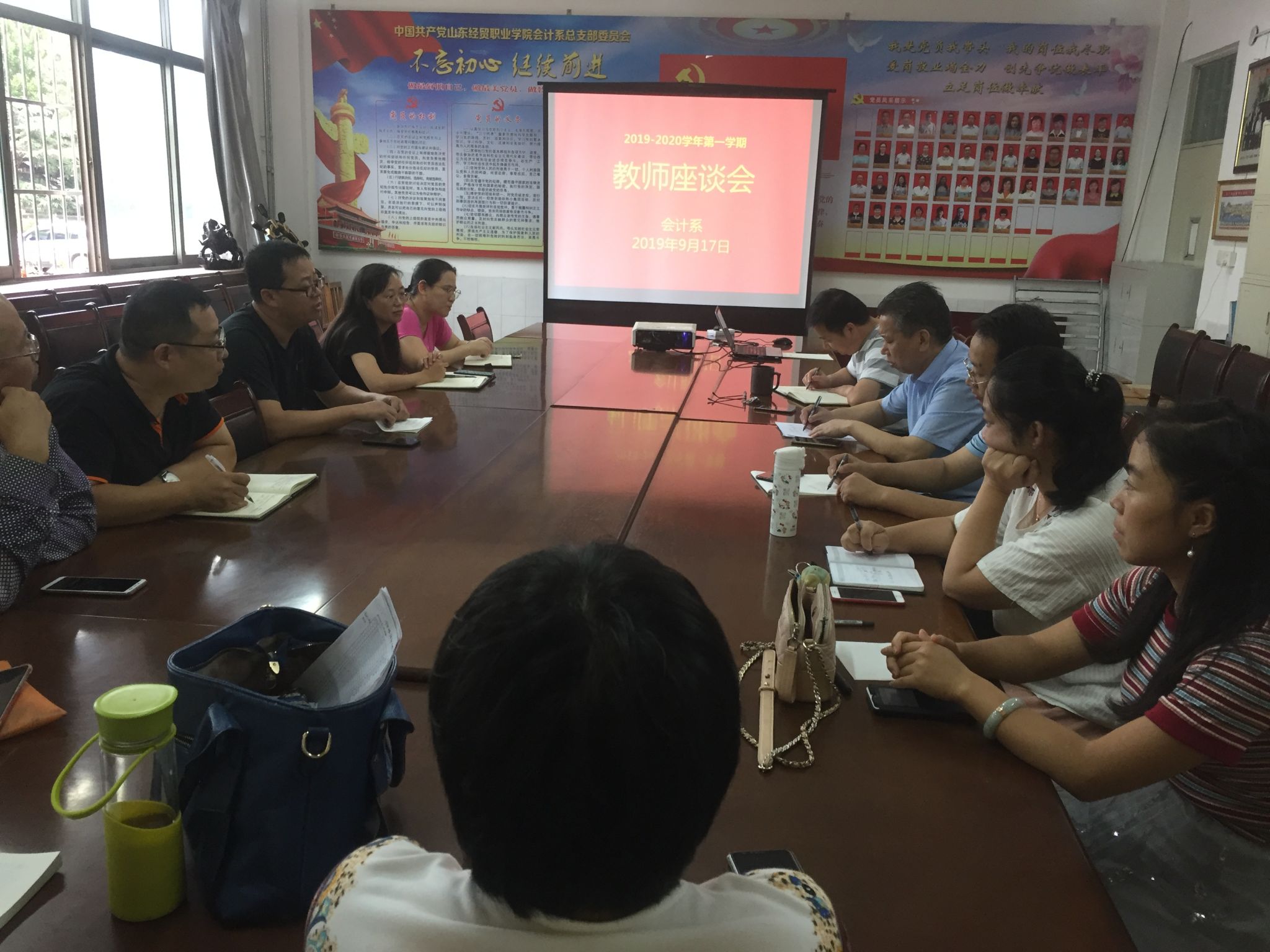 9月17日下午,在充满收获的金秋季节和新中国70华诞来临之际,会计系在1号教学楼106会议室召开了教师座谈会。会计系相关负责人及各教研室教师代表共计20余人参加了会议。教务处督导室杨心进参加座谈会。