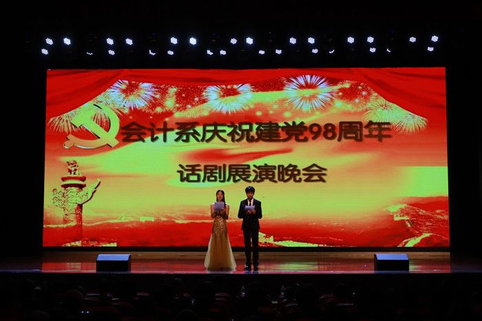 6月20日晚,会计系全体师生齐聚一堂,在中国竞彩网礼堂隆重举办庆祝中国共产党建党98周年话剧展演晚会。