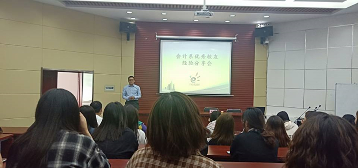 为响应职业教育活动周要求,5月8日下午会计系在1号教学楼122教室举办了优秀校友经验分享会,会计系团总支分管老师王青青、九二级校友李国庆(现任阳光人寿保险公司副总经理)以及2018级部分班级参加本次活动。
