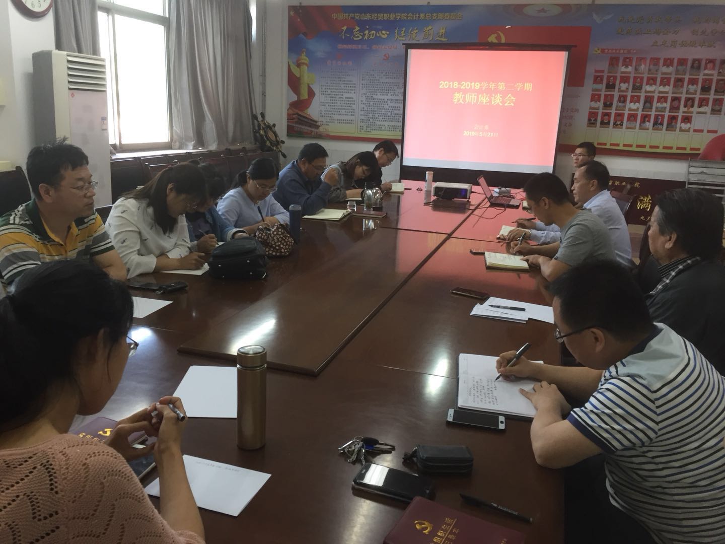 5月21日下午,会计系在1号楼106会议室召开本学期教师座谈会。各教研室教师代表、辅导员代表以及会计系主要负责人共20人参加,教务处督导室杨心进参加会议。