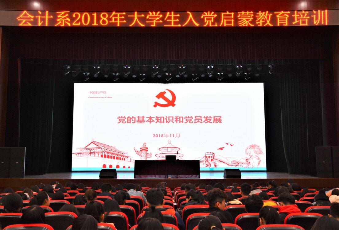 马起朋从“党的基本知识”、“中国共产党三个伟大历史贡献”、“党员发展”、“对同学们的意见建议”等四个方面为新生做了全面介绍。通过讲解中国共产党的光辉历程、党的基本知识和理论等方面的内容,结合会计系党建工作基本情况,使新生对中国共产党有了更加深入的了解。随后,他重点就入党的手续和程序,发展党员的具体流程和要求进行了解读,并对同学们在大学期间如何提高思想政治水平、积极向党组织靠拢提出了五条意见建议。