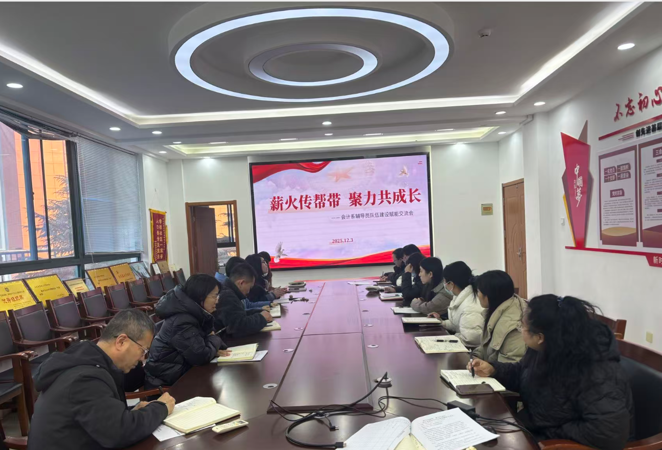 为加强辅导员队伍建设,深化“一站式”学生社区育人实效,12月3日下午,会计系在9号公寓二楼党团活动室开展以“薪火传帮带 聚力共成长”为主题的辅导员赋能交流会。