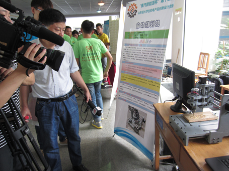该作品运用改进的工业数控操作软件和排版处理软件,能够制作线路间距在3mm以上,长宽在25×20cm内的电路板。制作空间在25×20×10cm内的软材料模型及模具。精度在0.1mm以内。适用于小物件的雕刻切割。我校其他参赛作品分别荣获二等奖和三等奖。