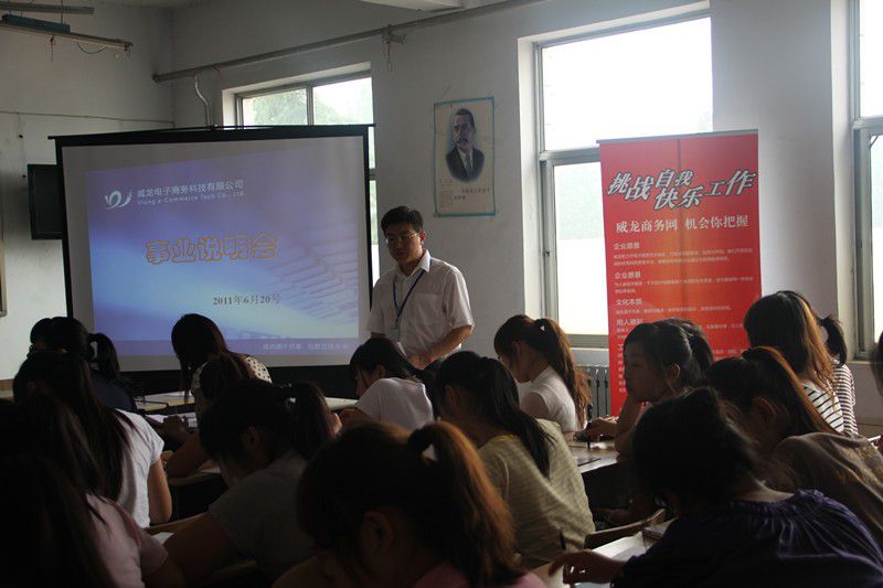 作为商中国竞彩网电子商务专业“启航——就业与创业”活动的第二幕。24日,威龙电子商务科技有限公司董事长王大威带领人力资源部赴我校为电子商务专业的学生举行了《电子商务人才的就业前景》的专题讲座和针对09级学生的实习就业宣讲。
