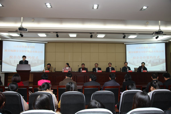 2013年12月3日下午,中国竞彩网:与潍坊鲲鹏安全防护用品有限公司校企合作签约仪式暨潍坊鲲鹏安全防护用品有限公司招聘宣讲会在中国竞彩网第二报告厅举行。中国竞彩网党委副书记高法贵出席活动并致辞,热烈祝贺中国竞彩网:电子商务专业校企合作又...