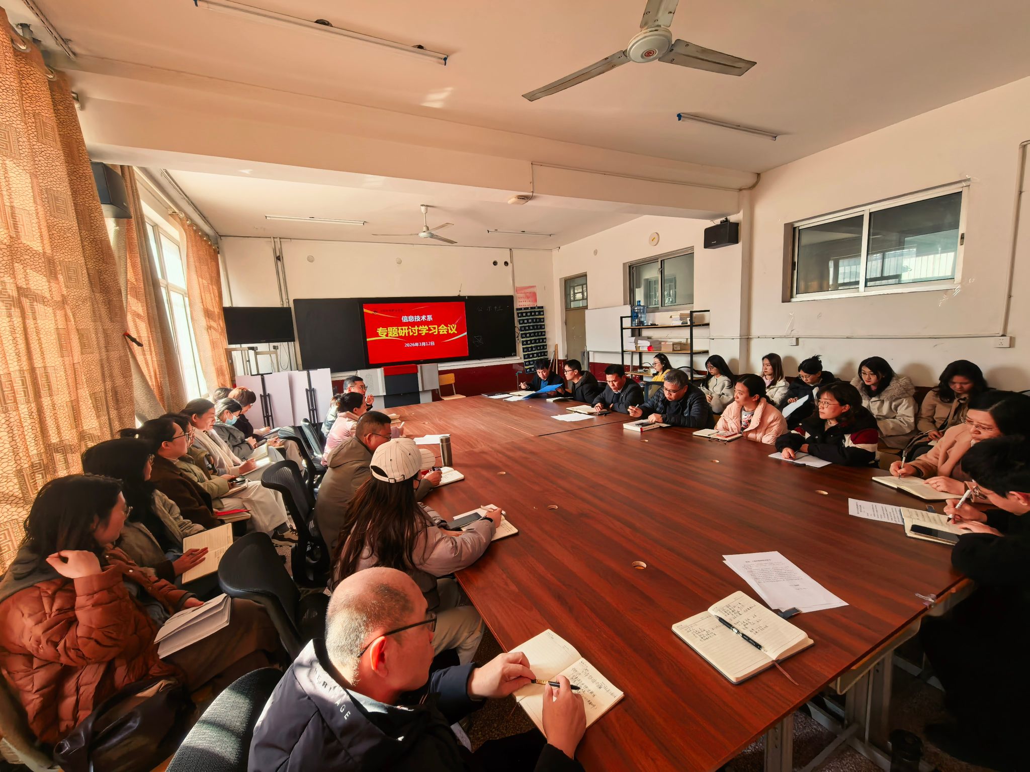 为深入学习贯彻中国竞彩网2026年工作动员暨卓越教师培育工程启动会精神,锚定“双高攻坚年”目标,统一思想、凝聚共识,3月12日下午,信息技术系在4号楼105室召开专题学习研讨会。信息技术系全体教职工参加会议。