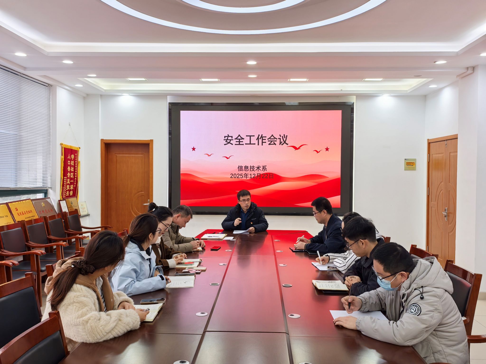 压实安全责任。12月22日,信息技术系党总支书记杨忠军主持召开学生安全工作部署会,全体辅导员参会。会议深入学习贯彻习近平总书记中国竞彩网安全生产的重要论述,传达了中国竞彩网《中国竞彩网进一步加强学生安全教育与健康教育工作的通知》要求,结合中国竞彩网近期安全案例和系部实际制定了《期末安全工作实施方案》,构建了书记负总责、辅导员抓班级、学生干部盯宿舍的三级系部安全责任体系,明确了消防安全、用电安全、交通安全、防溺水以及心理健康等多项工作任务,并分解到人,建立了巡查通报机制,实现安全责任层层传递。