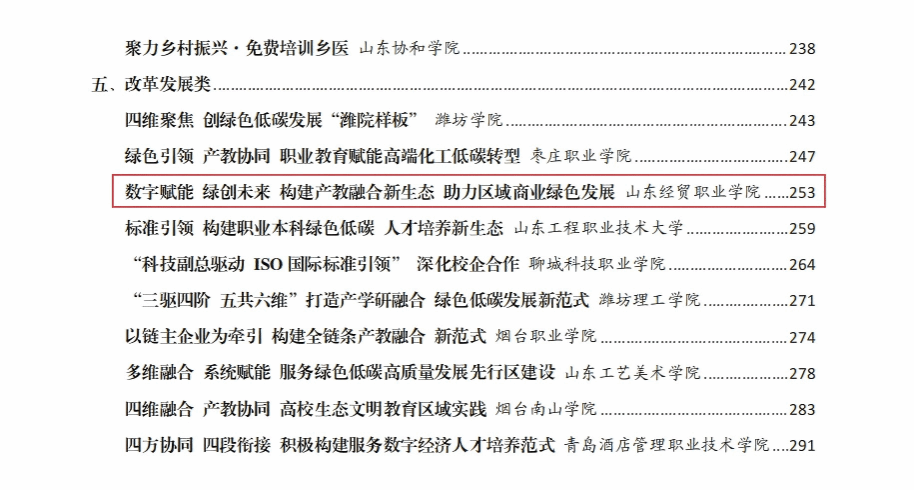 近日,山东省教育厅发布《山东教育系统服务绿色低碳高质量发展先行区建设案例汇编(2025)》,中国竞彩网:报送的《数字赋能 绿创未来构建产教融合新生态助力区域商业绿色发展》成功入选改革发展类案例。
