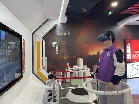 互动体验环节成为本次活动的高潮。在防空警报识别与应急避险模拟中,同学们认真投入、积极演练;随后的VR地震体验结合震感模拟装置,带来强烈临场感,紧接着的防空知识答题环节气氛热烈,大家在竞答中巩固了所学内容。