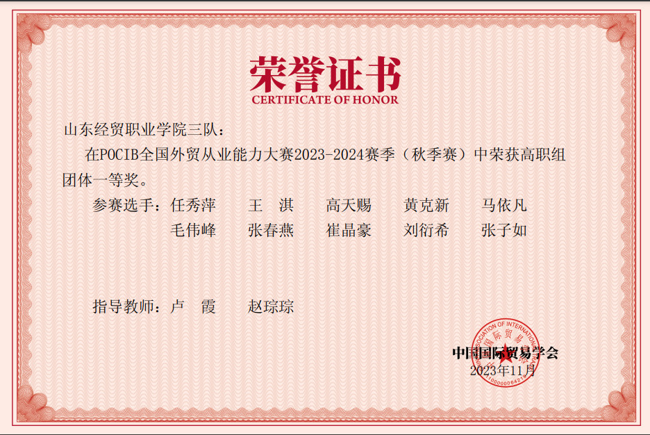 国贸2专业学生获全国外贸从业能力大赛团体一等奖