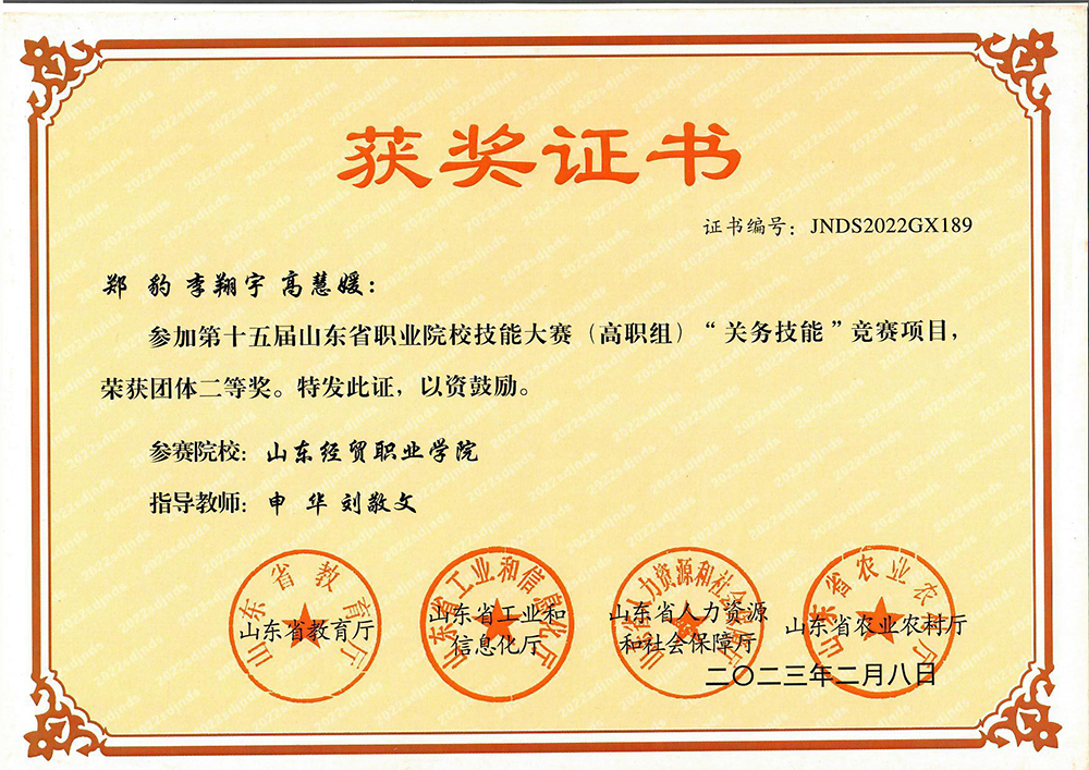 人才培养成果显著:在全国关务技能、货运代理等大赛中获二等奖6项、团体三等奖2项及多项个人奖,在省职业院校技能竞赛中多次获得一等奖二等奖。