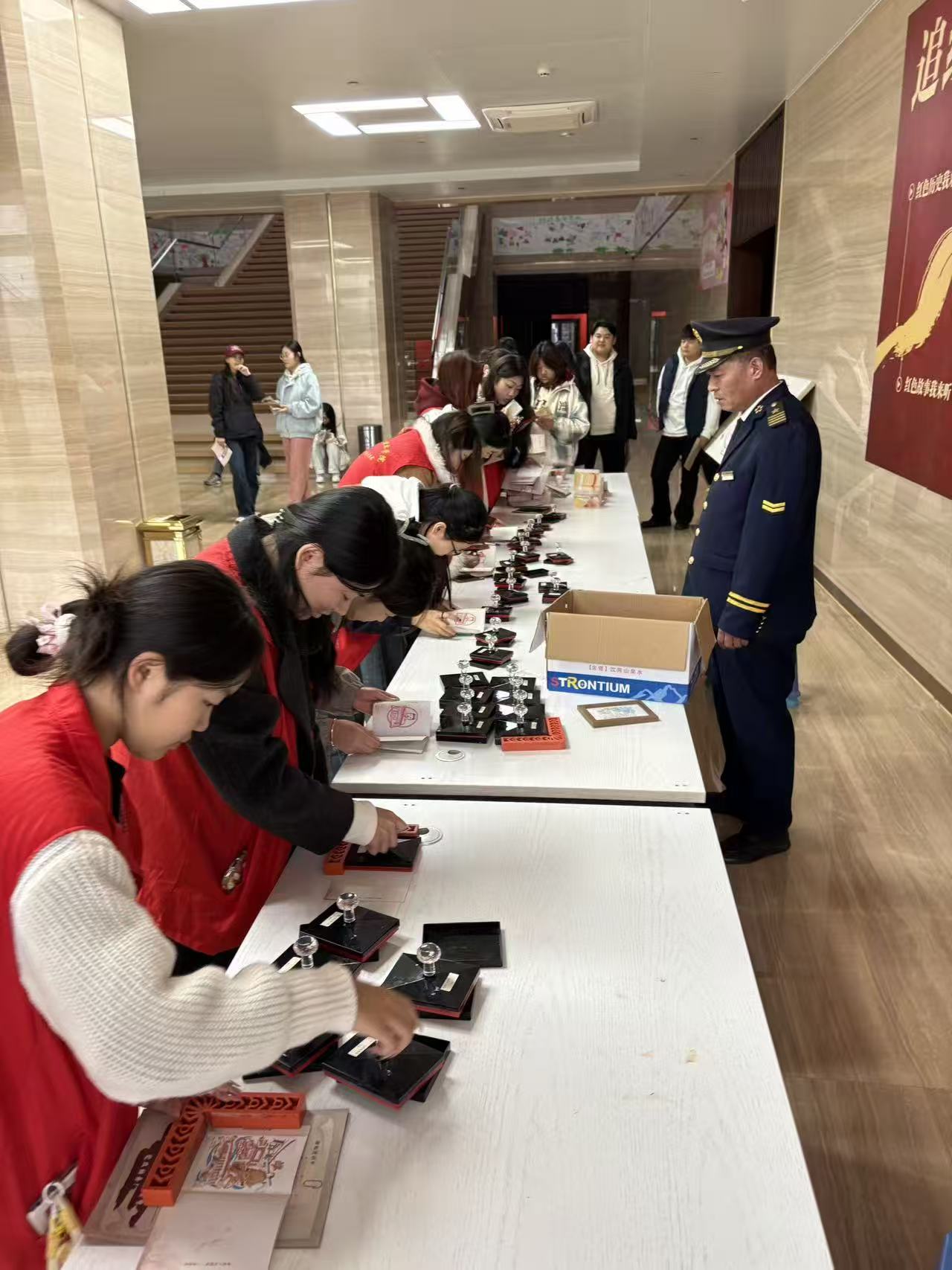 本次活动亮点是参与特色研学“追红少年——红色情报之旅”。同学们化身“情报员”,在“摩斯密码寻踪”“通关密语解密”等互动挑战中,通过团队协作破解谜题,完成集章任务。这种沉浸式体验打破了传统单向灌输模式,让同学们在主动探索中切身感受革命年代地下工作的智慧与艰辛,实现了从“被动聆听”到“主动参与”的转变,使红色精神成为可感知的实践体验。