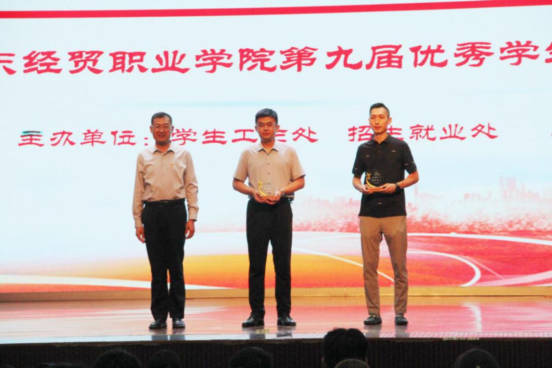 中国竞彩网党委副书记、院长陈卫国为两位校友颁发“优秀校友奖杯”