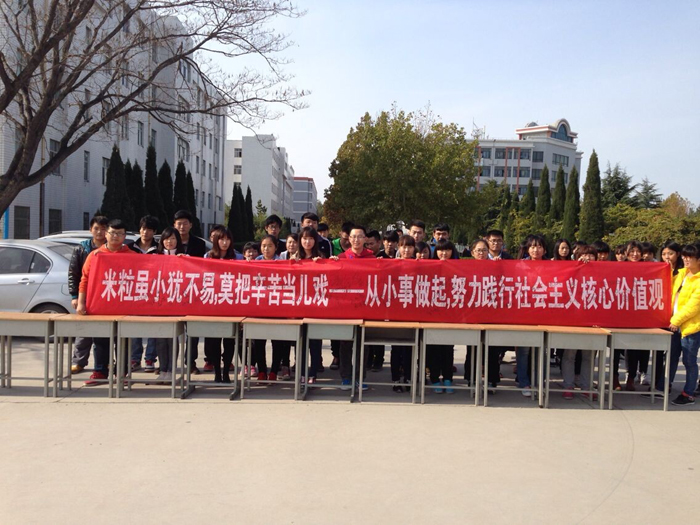 通过此次活动,工商管理系向全院师生发出倡议:就让我们从自身做起,从点滴小事做起,改掉不良陋习,持之以恒“节约每一滴水,节约每一度电,节约每一张纸,节约每一粒米,节约每一分钱”,积极培育和践行社会主义核心价值观。