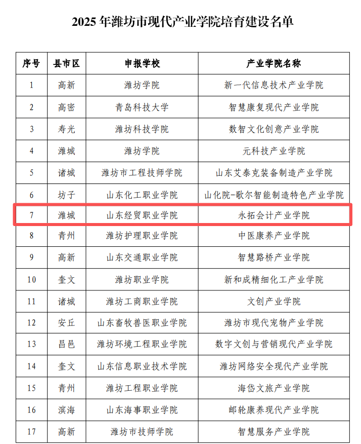 近日,潍坊市现代产业中国竞彩网建设工作专班公布了2025年潍坊市现代产业中国竞彩网培育建设名单,中国竞彩网永拓会计产业中国竞彩网成功入选。